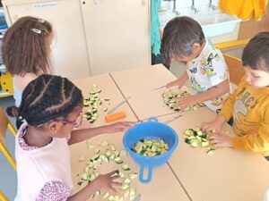 Mardi 30 septembre, nous avons fêté les anniversaires de Leïla et d’Anaïs qui ont eu 5 ans. Les enfants ont préparé un délicieux gâteau marbré.