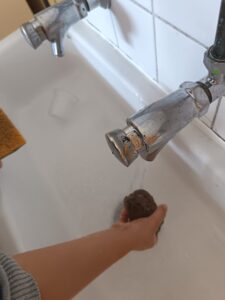 Les élèves ont dit qu’il fallait gratter, frotter les bonbons. Au bout de quelques minutes, certains réussissent à apercevoir un peu de blanc mais c’est difficlie et les bonbons cassent.