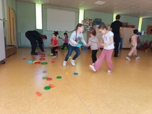 Lundi 23 et mardi 24 février, la classe a participé à deux séances de baby hand proposées par des élèves éducateurs sportifs. Au programme, divers petits jeux autour des chevaliers, des dragons et des princesses.