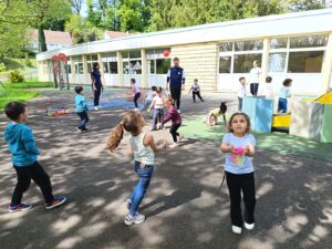 La classe a bénéficié de deux séances de cirque avec l’Association Passe Muraille. Merci à Flex, Courgette et Cornichon.