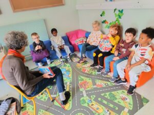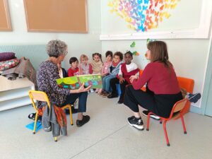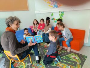 Chaque lundi, Claudie vient lire des histoires aux élèves de la classe.