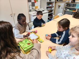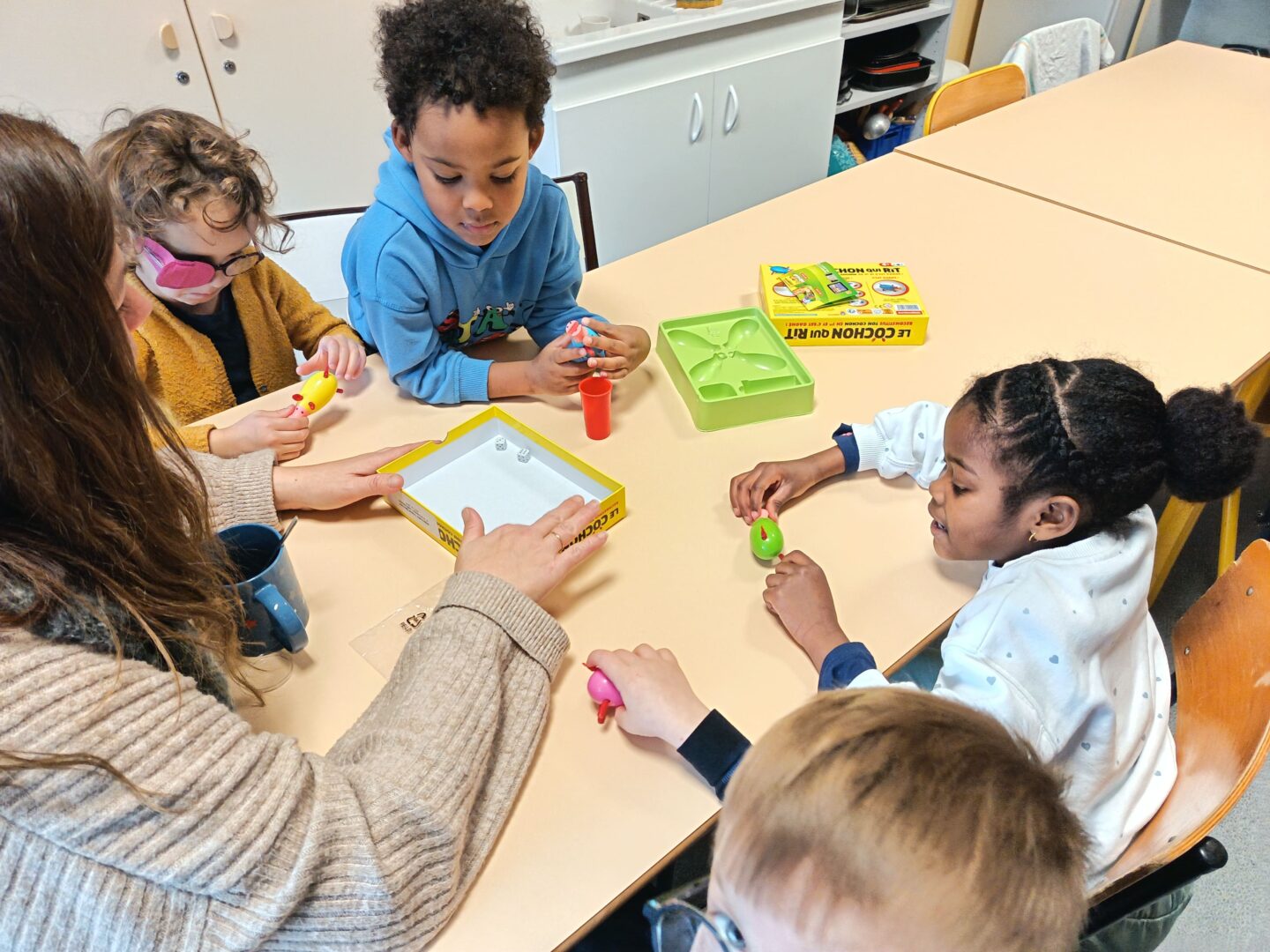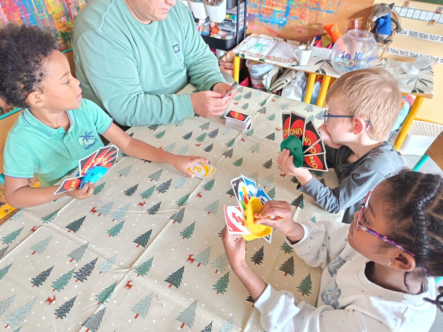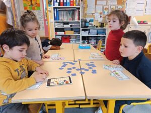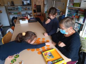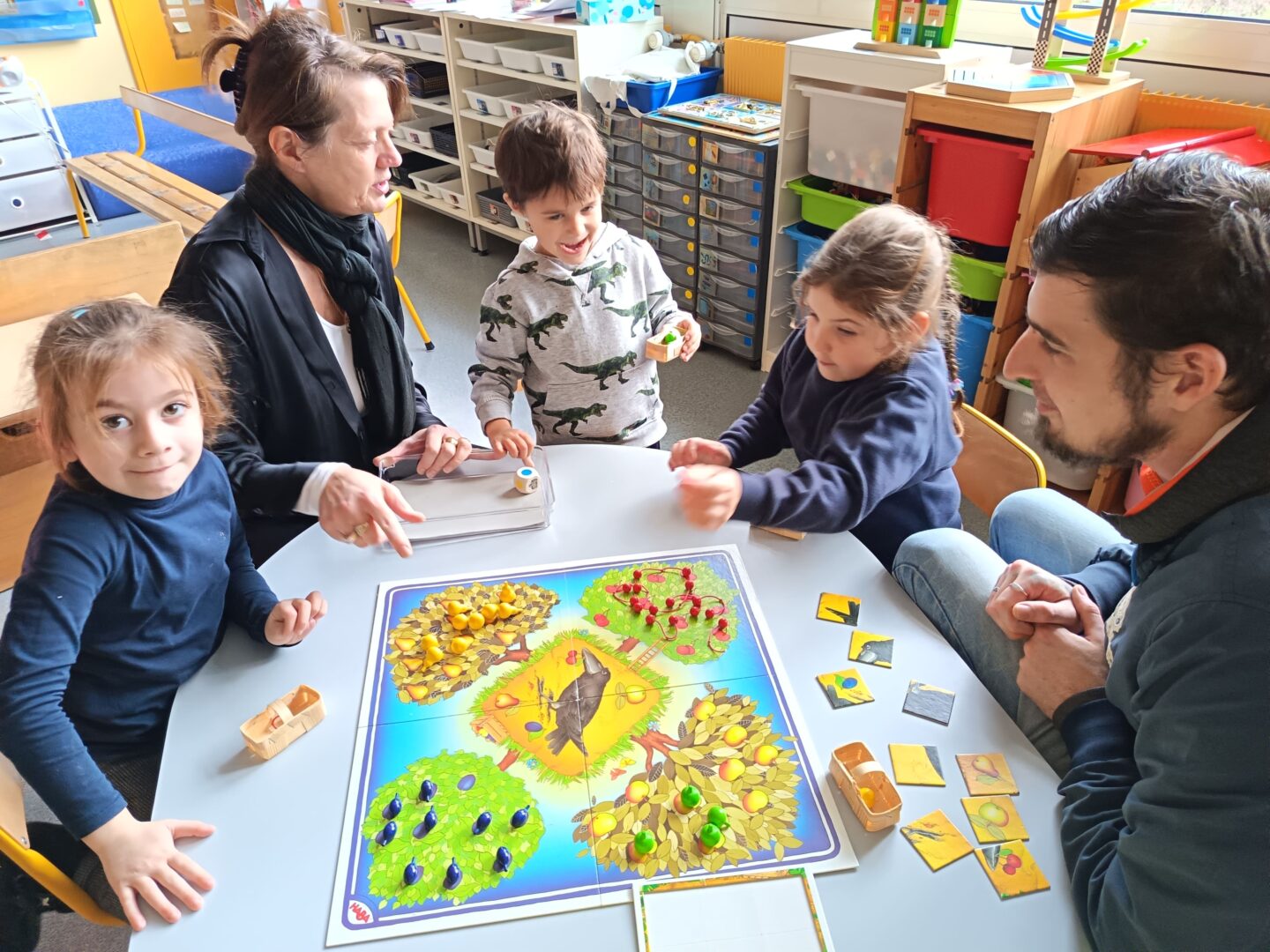 Chaque vendredi après-midi, les MS et les GS participent à des ateliers jeux de société. Merci aux parents qui se rendent disponibles pour jouer avec eux.