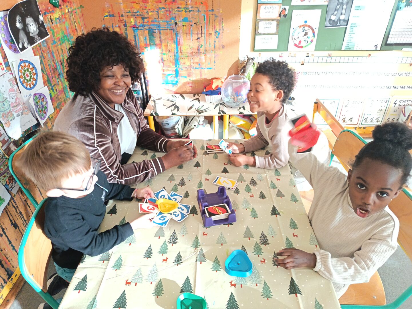 Chaque vendredi, nous accueillons des parents pour jouer à différents jeux de société avec nous.