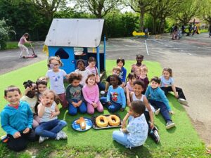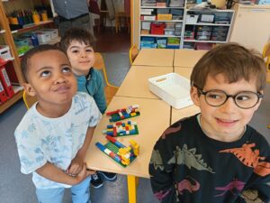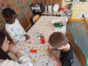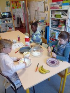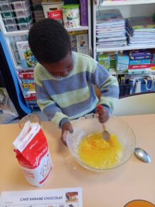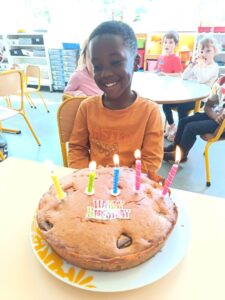 Jeudi 23 avril, nous avons fêté les anniversaires: les 5 ans de Raydan et les 6 ans de Léonny et Lou. Pour cette occasion, ils ont préparé un délicieux gâteau choco-bananes.