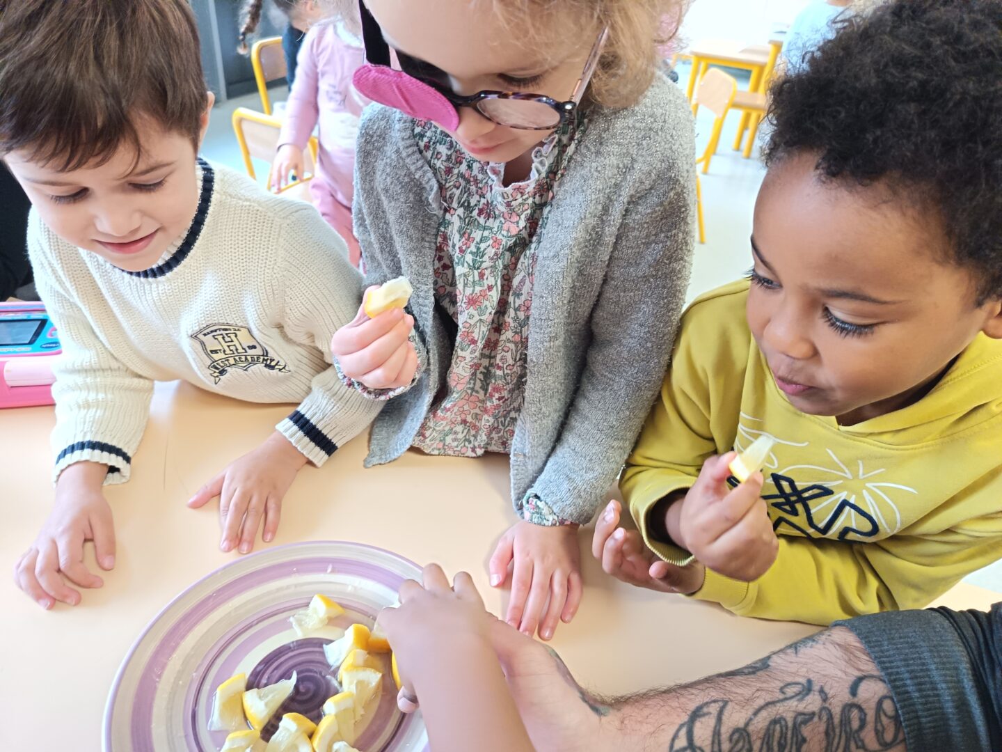 - Reconnaitre des aliments avec le toucher sans les voir.
