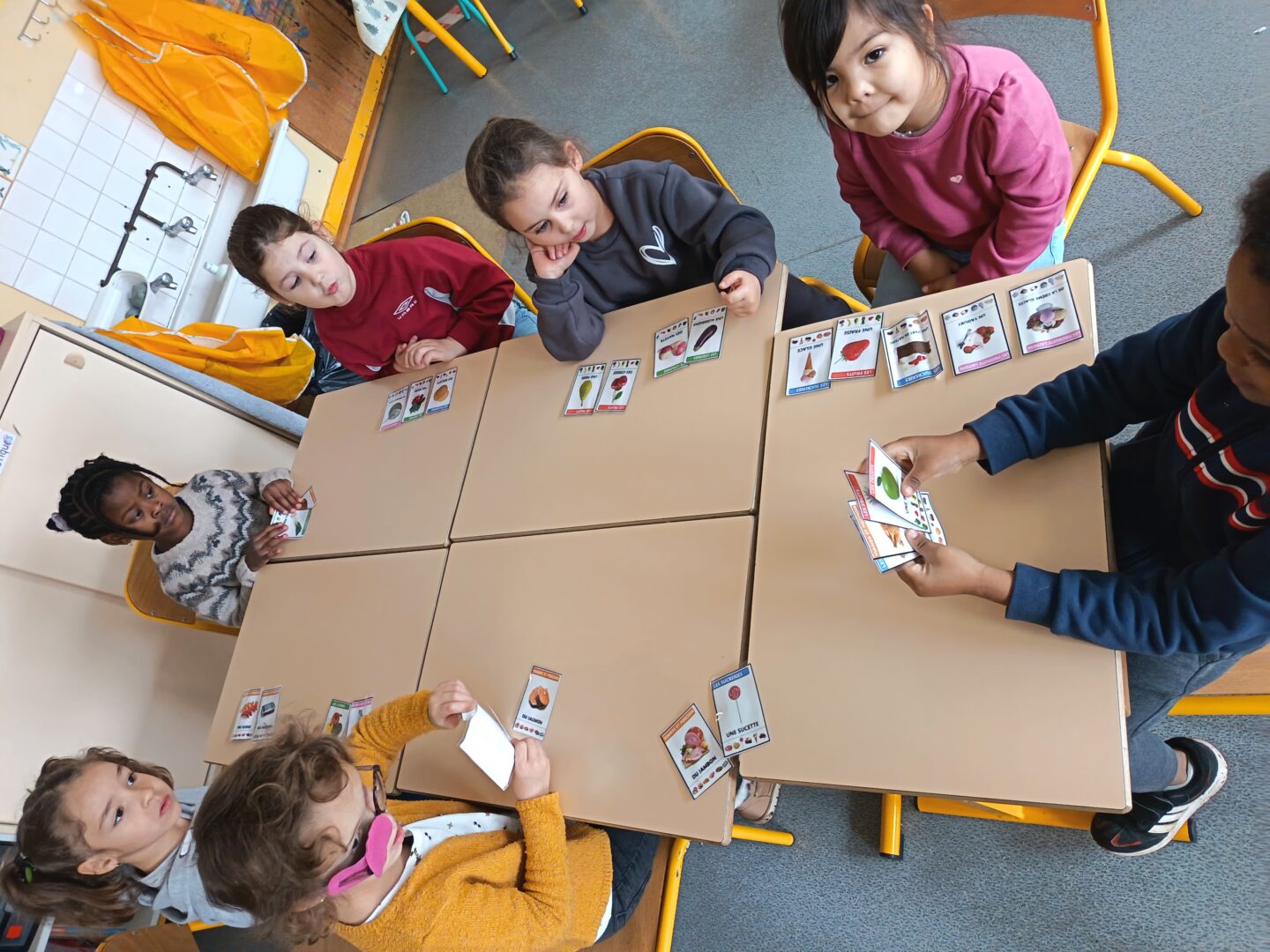 Nous avons participé à 3 jeux: le mémory des aliments, le loto des 7 familles et le tri des aliments par catégories.