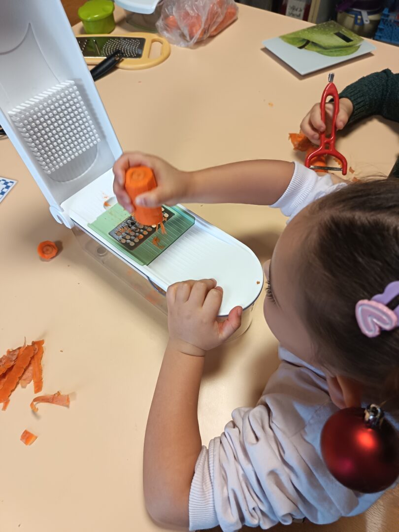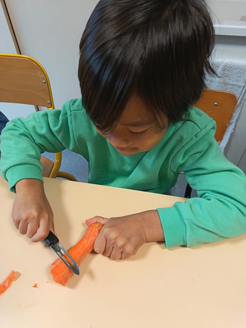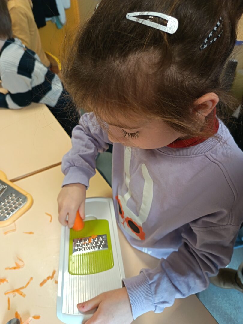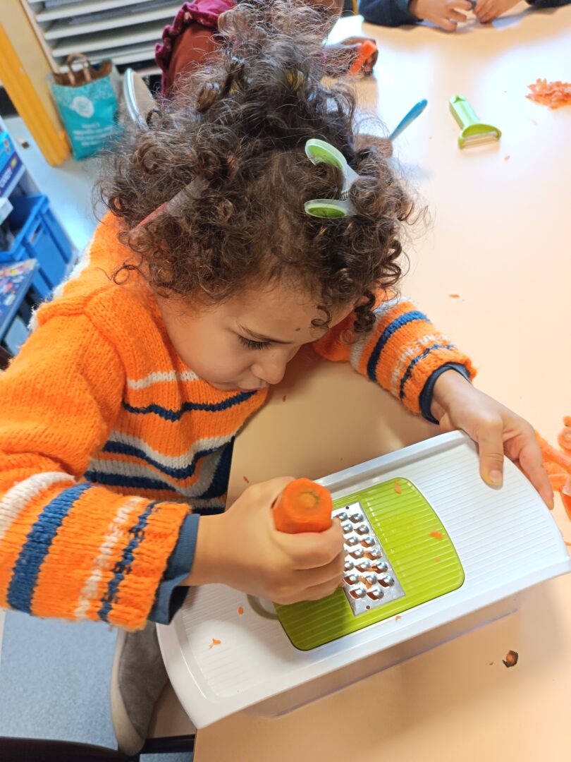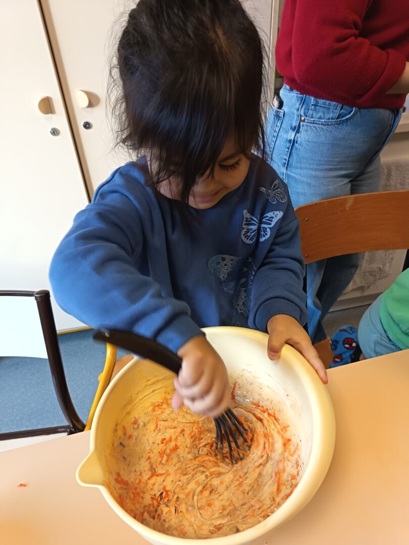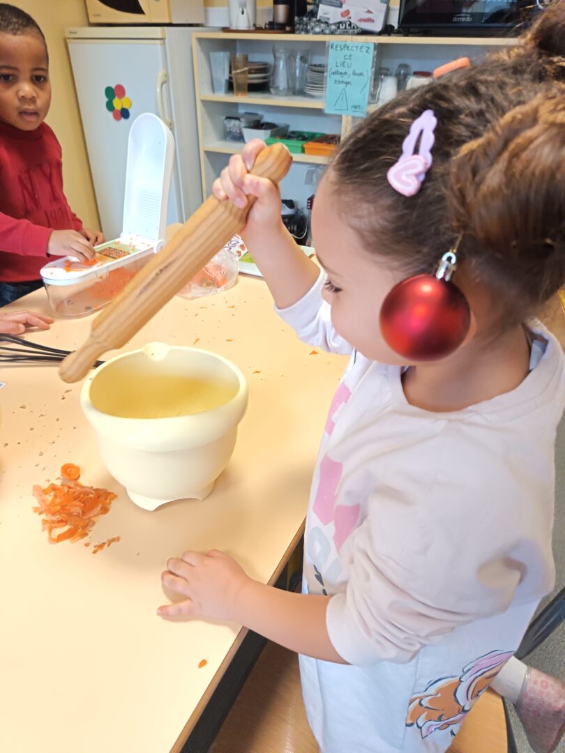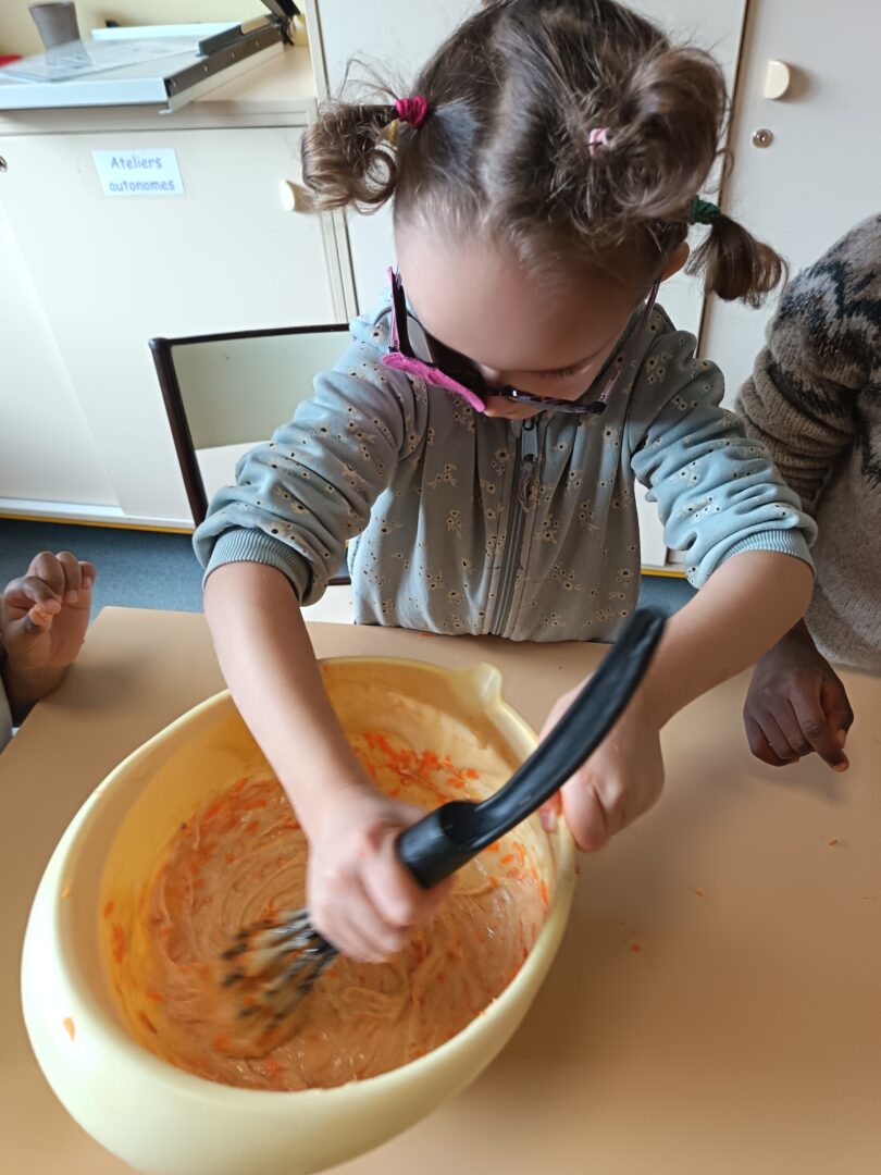Jeudi 4 décembre, nous avons fait un gâteau aux carottes et nous l’avons dégusté.