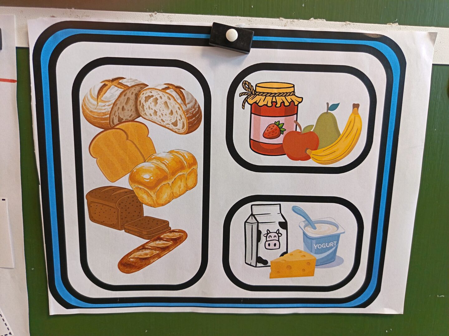 - Préparer son goûter idéal en collant les étiquettes d’aliments de différentes catégories.